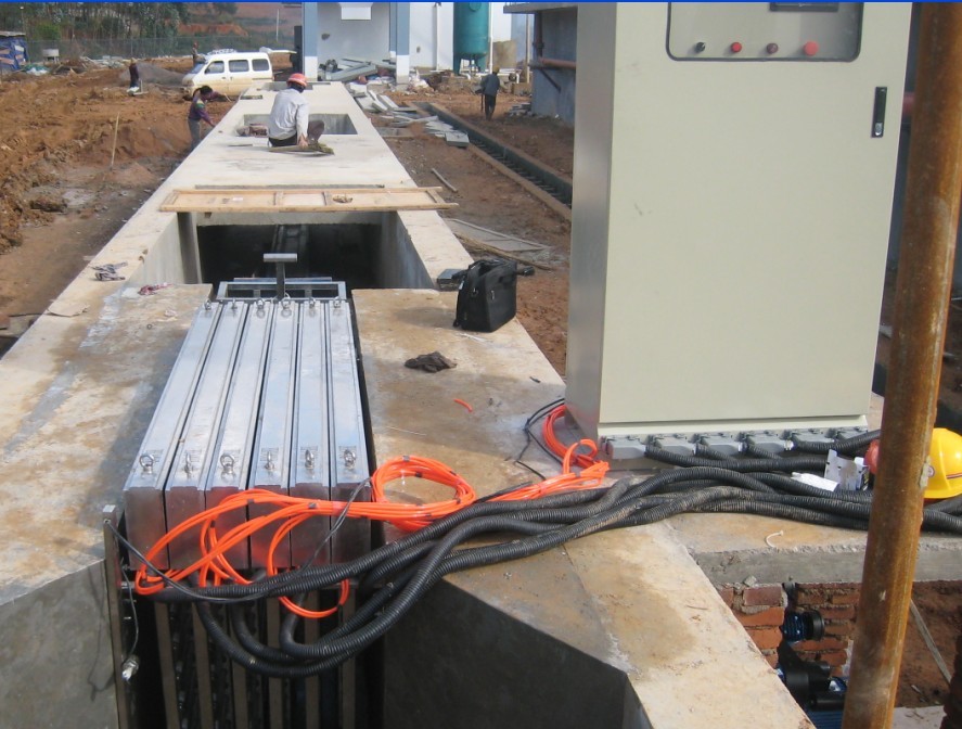 紫外消毒設(shè)備采用模塊化設(shè)計(jì),安裝、維護(hù)均可用吊車吊離水面,維護(hù)或檢修時(shí)無需中斷整個(gè)系統(tǒng)的運(yùn)行。同時(shí),即使一個(gè)消毒模塊出現(xiàn)故障也不會(huì)影響其他消毒模塊的運(yùn)行,只需將發(fā)生故障的消毒模塊吊起維修或更換即可。